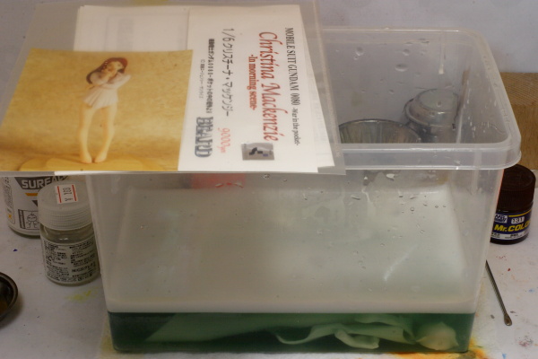 このキットの作例はシャツにクリアレジンを使っているようですが、これは通常レジンです。