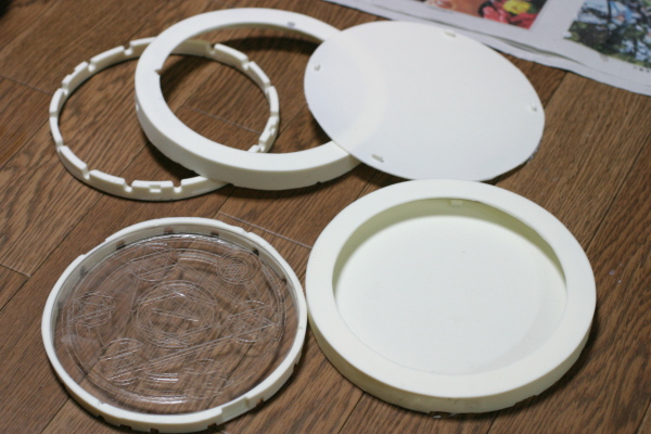 以前は15cmのアクリル丸板を内部に入れる構造にしてましたが、上部にしアクリル丸板の取外しを出来る様にします。