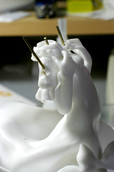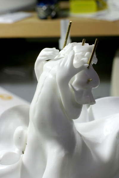 パーティングラインが意外と深かったのと、曲面が多かったのでリューターでパーティングラインを削っていたのですがレミリアさんのお尻の辺りが陥没しました(笑)。