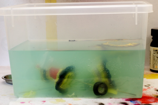 何度が水に漬けてマスキングを剥がした事がありますが今回はガッツリ漬け込みました。