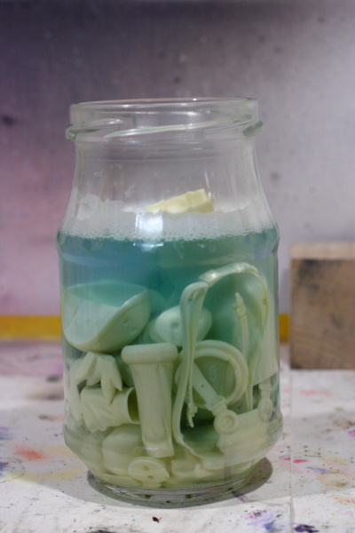 現在プラティさんはクレンザーで洗浄し入歯洗浄剤に漬け込み中。