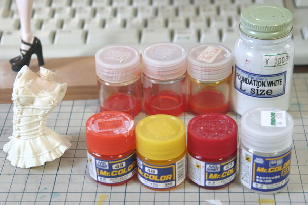 基本的に入手が容易なクレオスのクリアイエローとクリアレッドを使ってます。