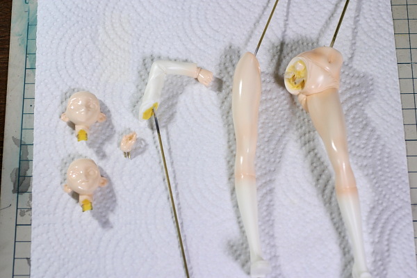 肌をクリアのサフレスで塗装中です。