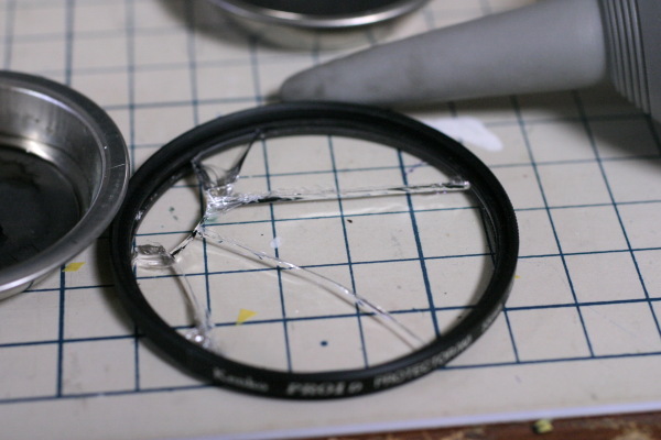 幸いレンズカバーとプロテクターをつけて居たので良かったのですが、レンズカバー越しにプロテクターが大破(涙)。