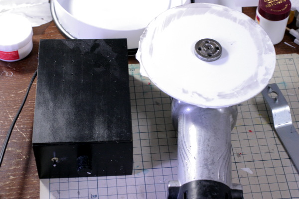 今回は更に精度を上げる為にレジンで作った外枠の原型をさらにディスクグラインダーで削り出そうとしましたが、何を血迷ったかディスクグラインダーのプラグを万能調光機に繋がずに直接コンセントへ・・・。