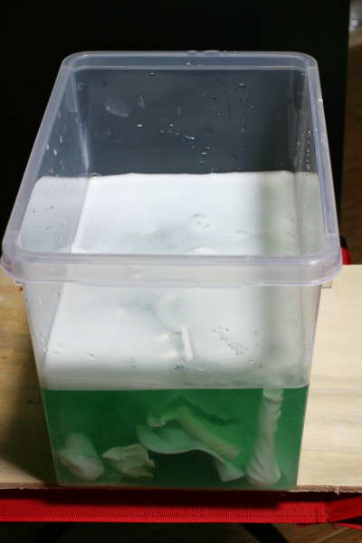 いつも通りクレンザーでゴシゴシ洗った後に、熱湯に数分間漬けさらにタフデントに漬込んでる状態の物です。